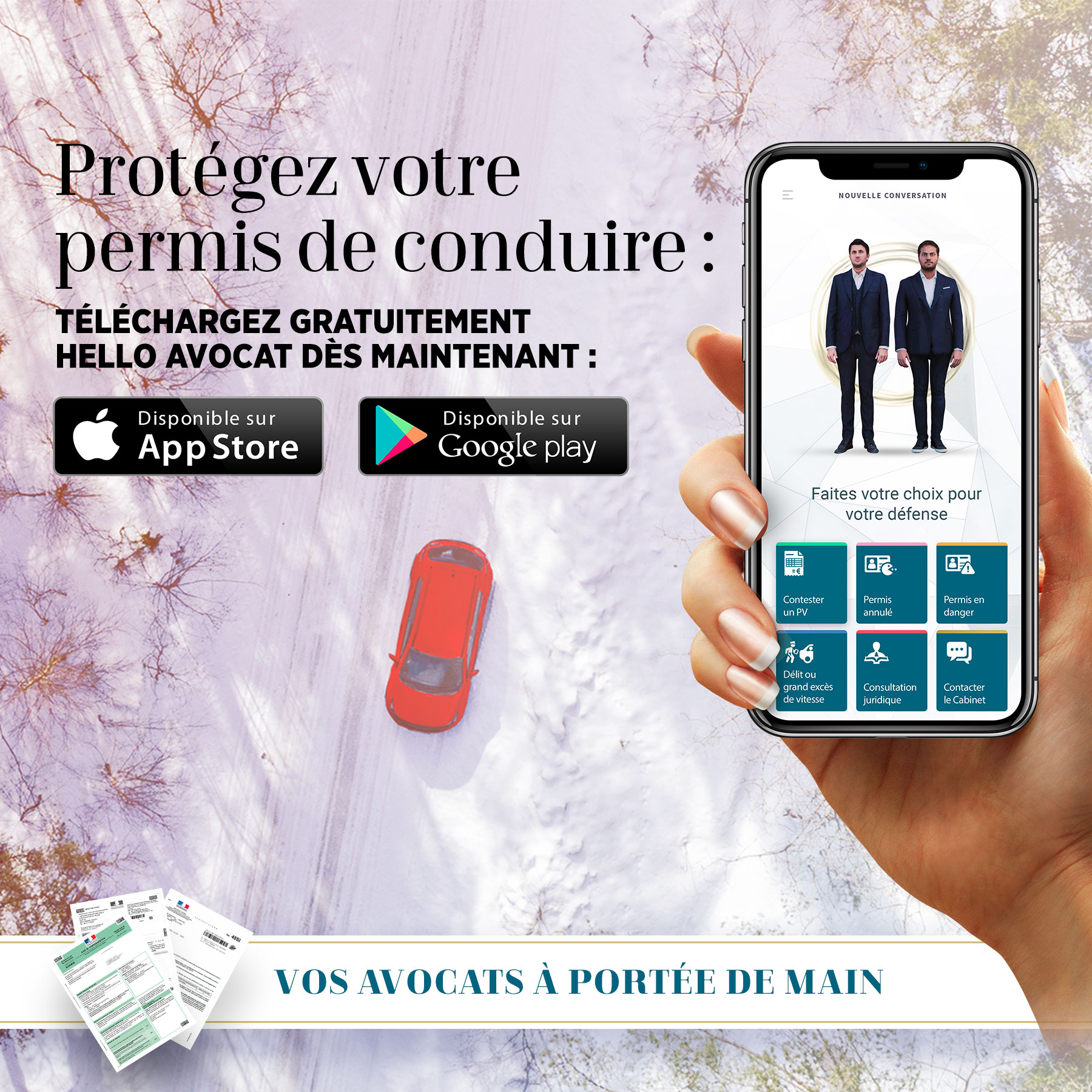 L’appli Hello Avocat s’adresse à tous les usagers de la route. Sa technologie se met au service du justiciable dans 4 situations :