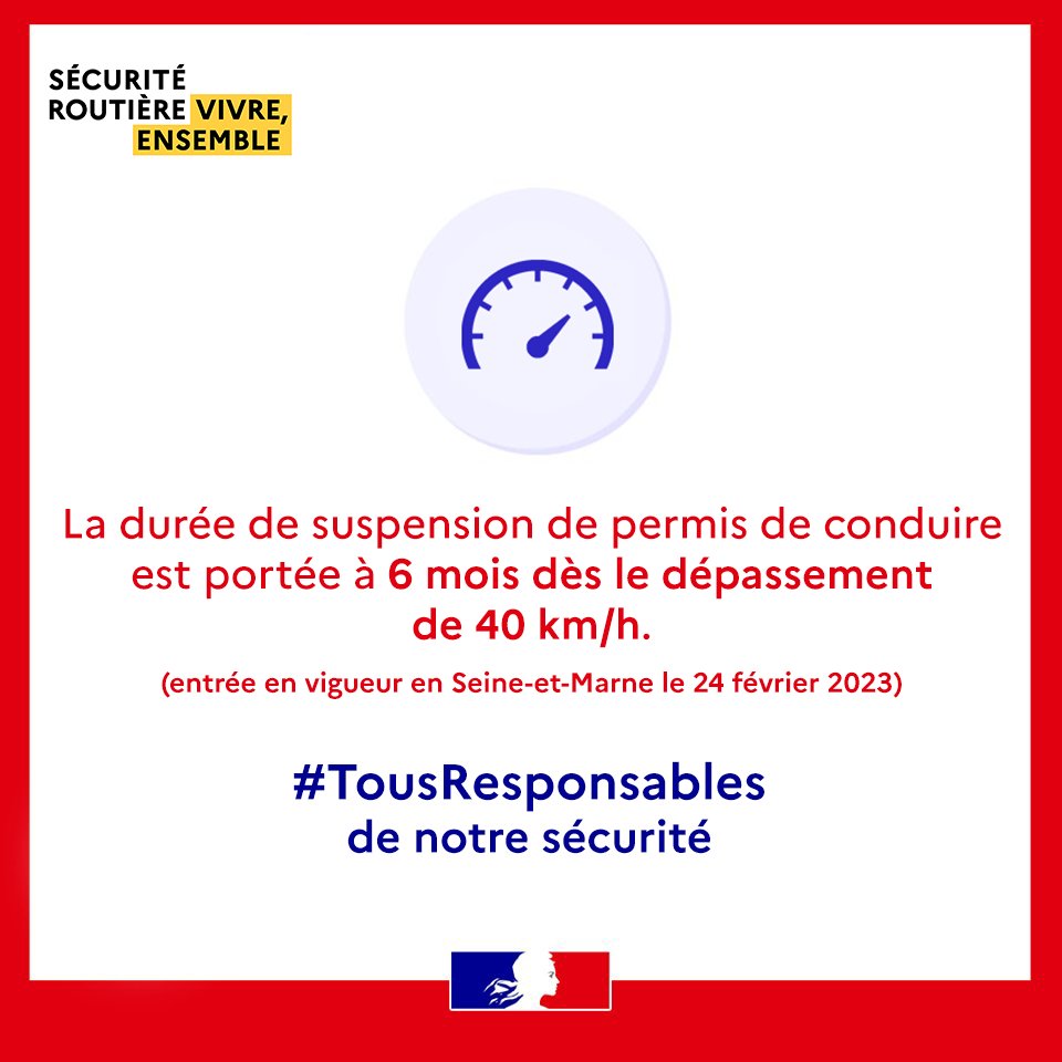 • toute personne commettant un excès de vitesse égal ou supérieur à 40 km/h, s’expose à une sanction de 6 mois de suspension de permis de conduire, quelle que soit la vitesse autorisée, quel que soit le réseau routier