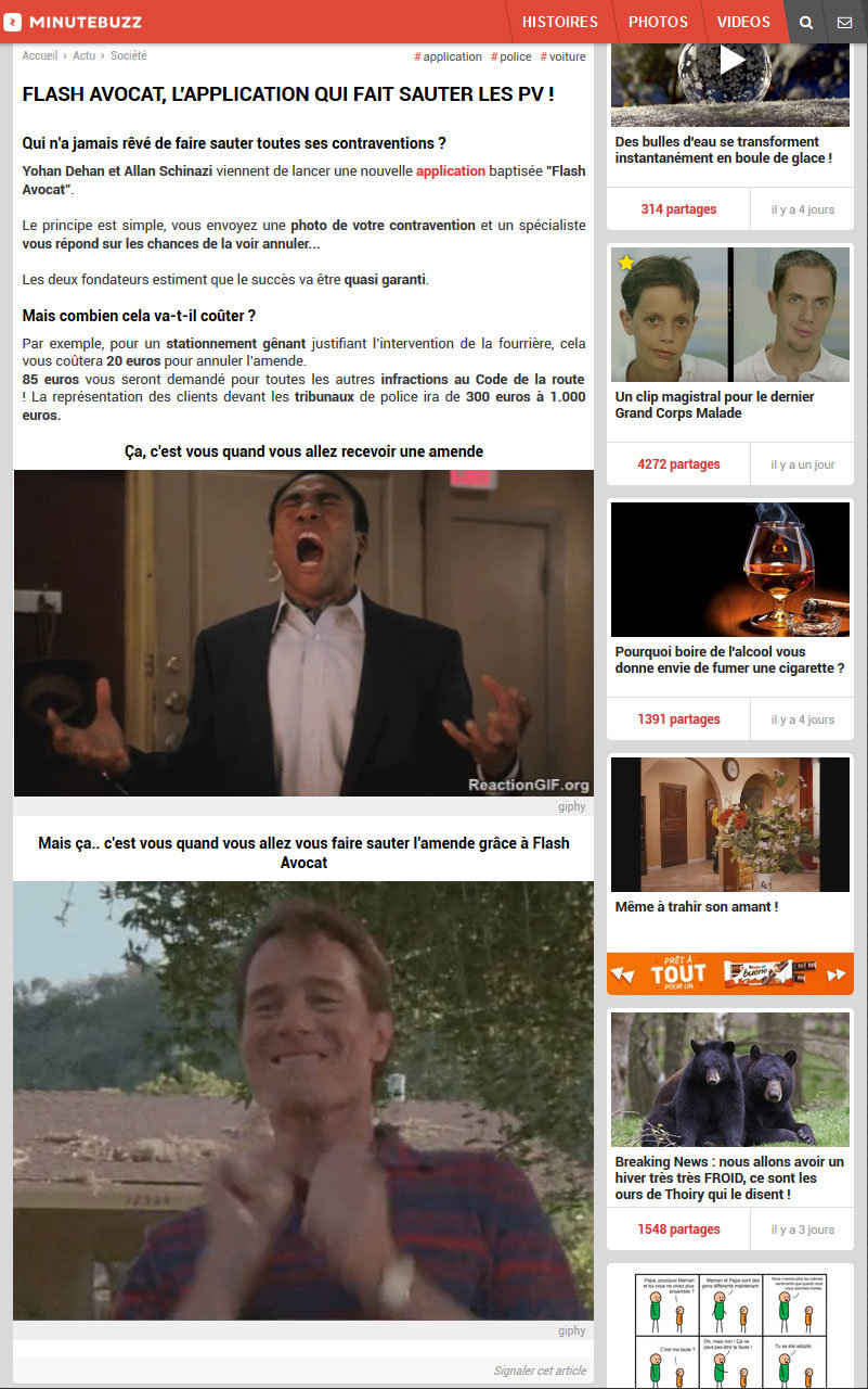 « Qui n’a jamais rêvé de faire sauter toutes ses contraventions ? » C’est la question que pose Minute Buzz, site internet fondé en 2010.